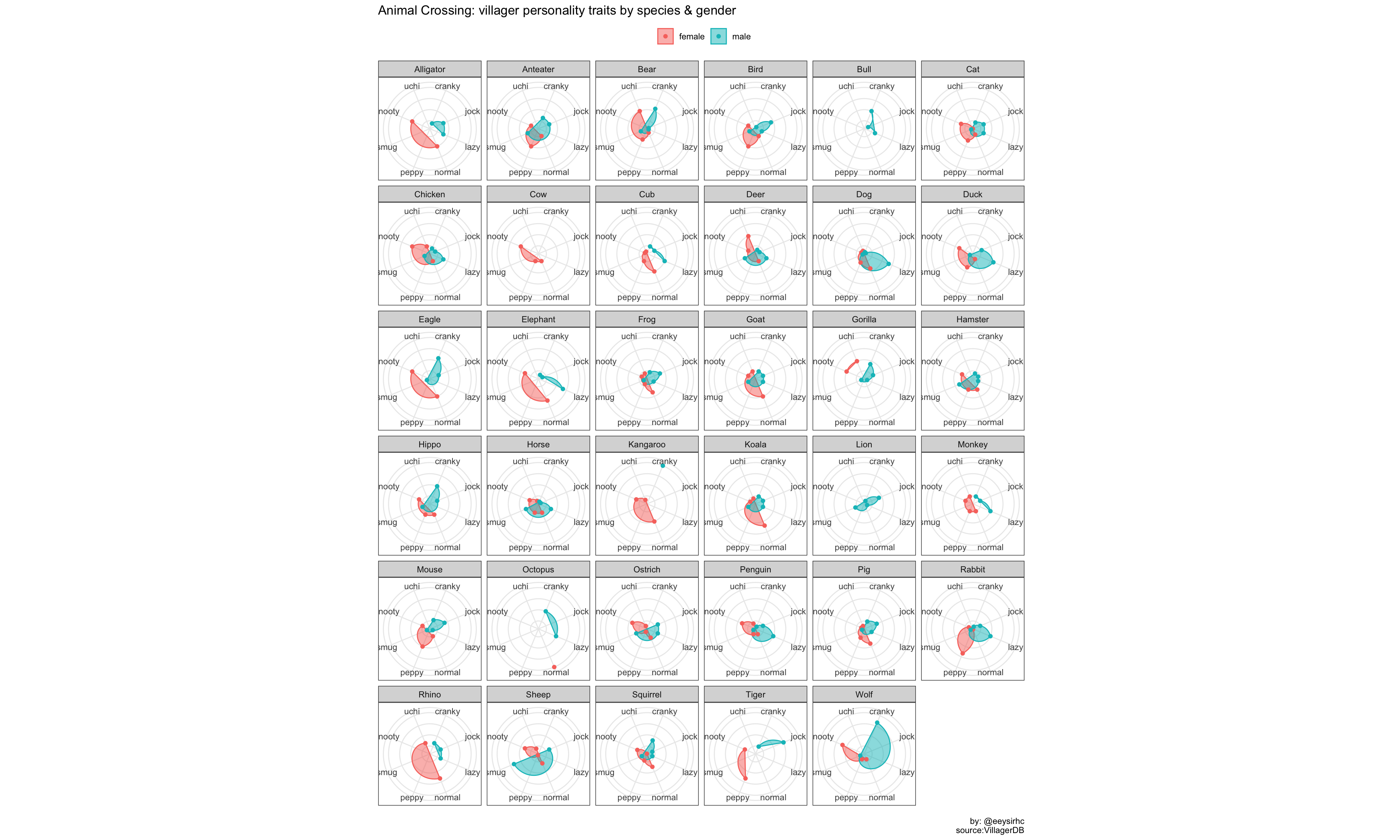 #tidytuesday about #AnimalCrossing villager personality traits for species x gender